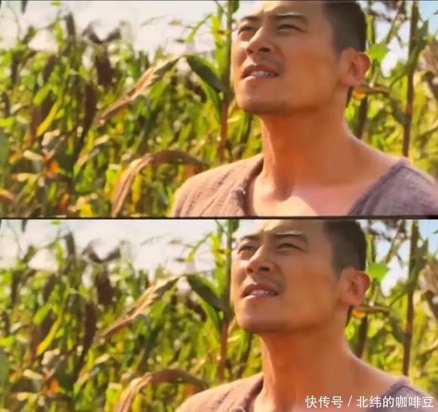 在郑晓龙的镜头下,就被用到极致, 饰演的余占鳌,浓厚的眉眼,挺阔的大宽肩,坚实的脊背上滚着的汗珠反射着太阳的光,这种原生态的男人味,真真迷人。
